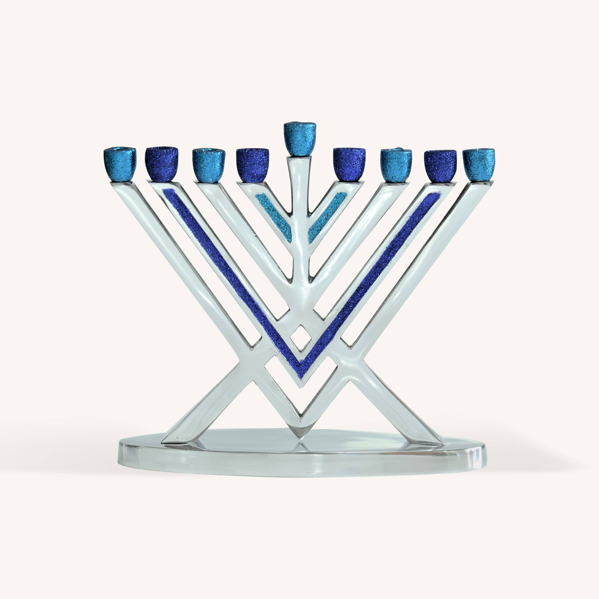 Précommmande - Hanoukia à bougie, bleue et argentée, style Rambam
