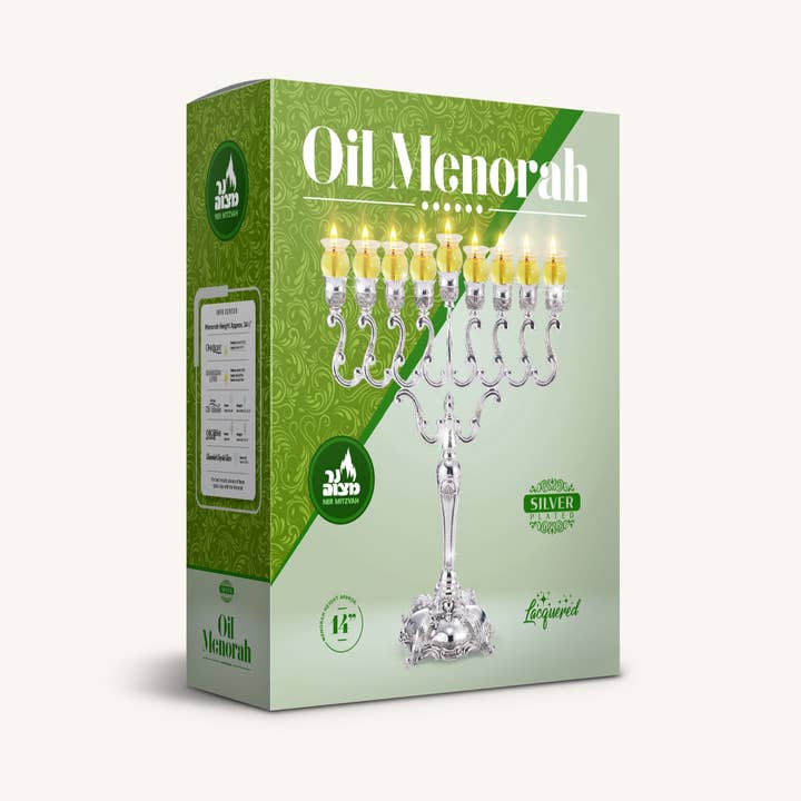 Précommande - Hanoukia à l'huile sur pied, en métal plaqué argent, 35 cm